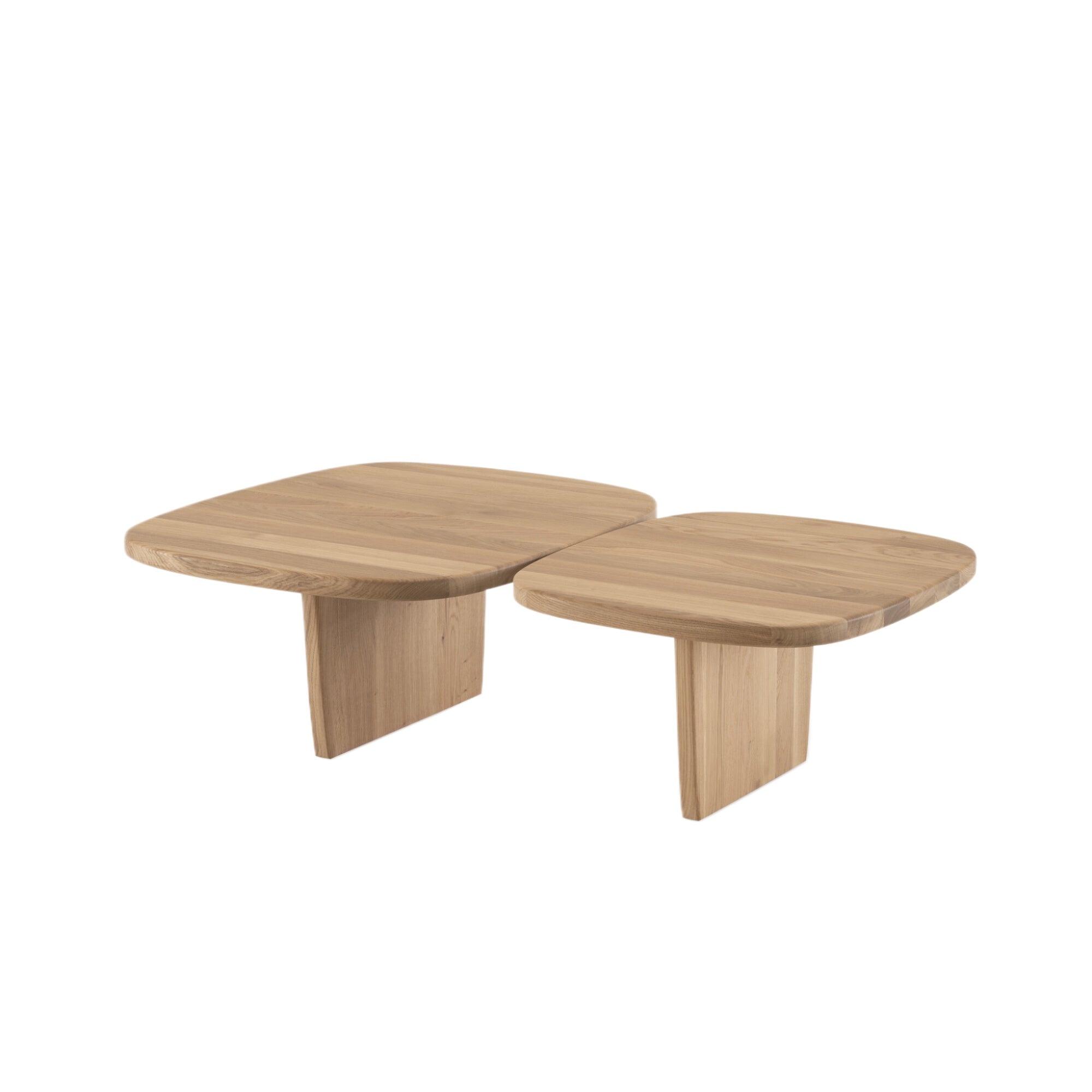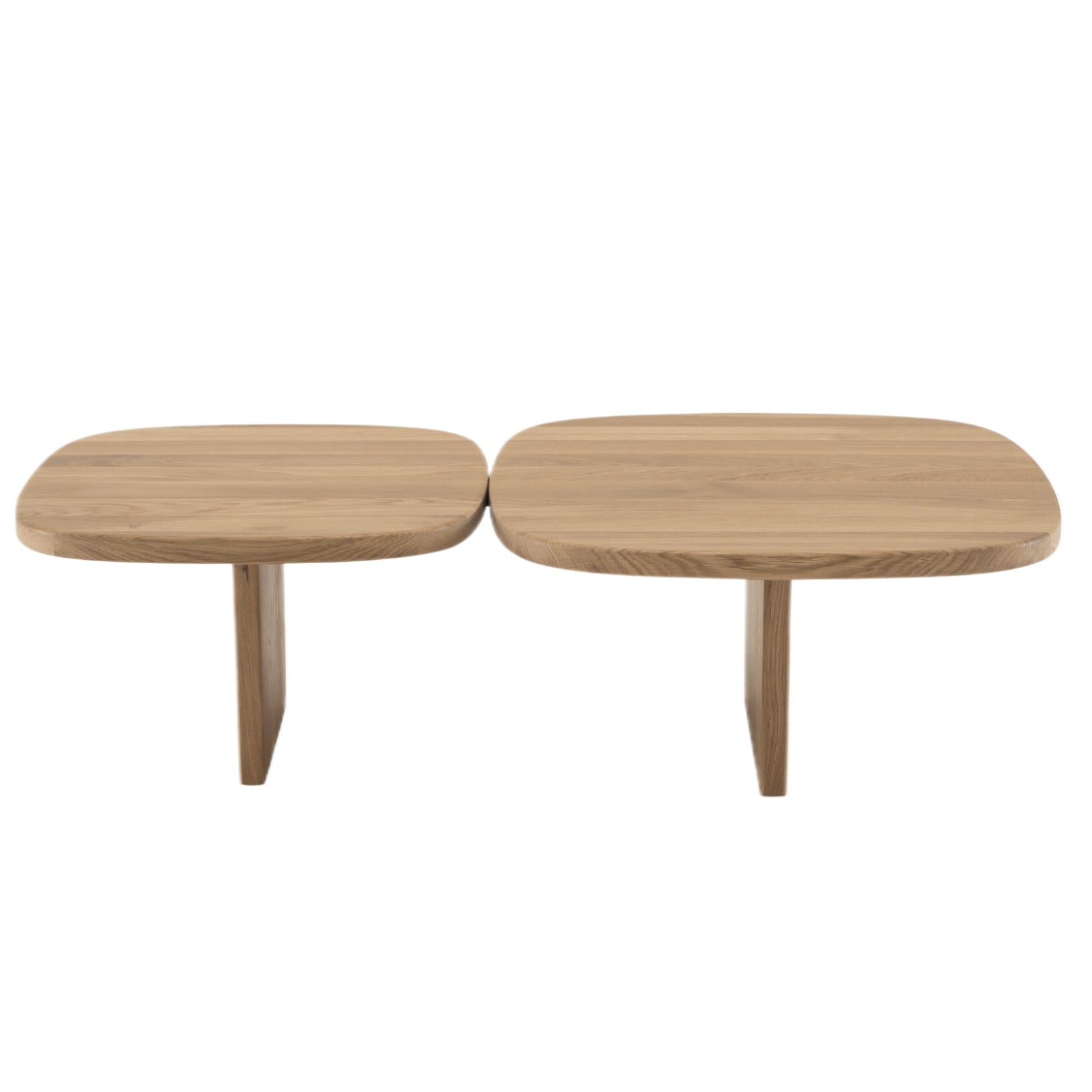 Nénufar is a low table made from solid oak, featuring soft, flowing shapes that highlight the natural beauty of the wood and add a touch of sophistication and warmth. The Low table with two tops is connected by a plate.