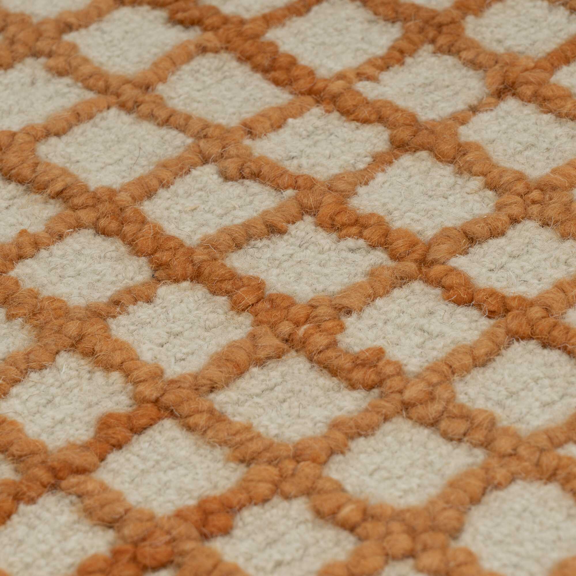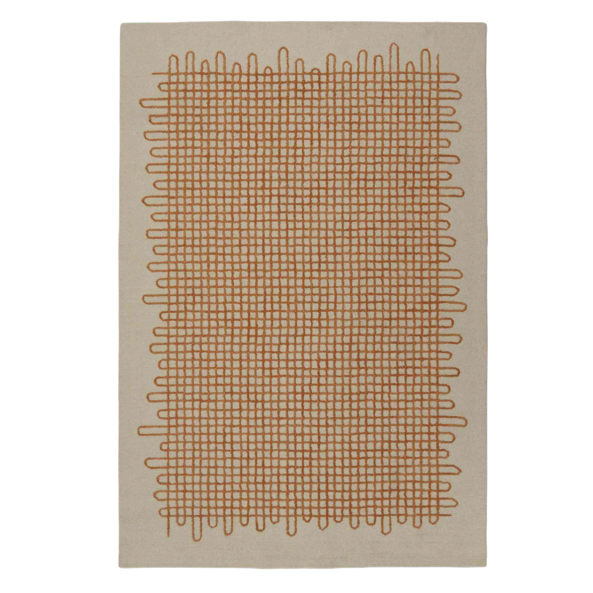 The Scraffito rug revisits the traditional grid pattern, adding a touch of spontaneity and movement. Inspired by freely drawn scribbles, its pattern forms a grid with rounded lines, creating a balance between structure and fluidity. Its soft and soothing ecru background contrasts with a bright orange pattern, infusing dynamism and modernity. This combination of warm hues allows Scraffito to blend equally well with a minimalist interior or a bolder decor. Scraffito stands out for its premium quality, softness, and durability. Its artisanal weave guarantees a unique finish, where each curve and line reveal authentic craftsmanship
